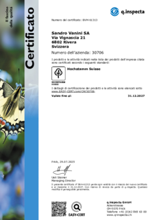 FSSC 22000-, ISO 9001-, Bio Suisse-, Halal-, Kosher- und Ticino Regio Garantie-Zertifizierung