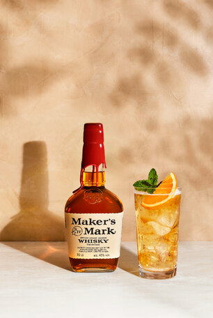 Minze und Maker's Mark Bourbon in ein Glas geben, Minze sorgfältig zerstossen. Orangensaft hinzugeben. Mit Eis und Ginger Ale auffüllen und vorsichtig umrühren.